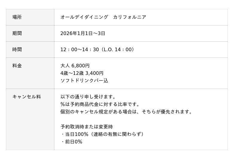 東京ディズニーリゾート(R)・オフィシャルホテルの東京ベイ舞浜ホテル ファーストリゾート(千葉県浦安市舞浜1-6)では、2026年1月1日から「新春ランチビュッフェ」を開催いたします。