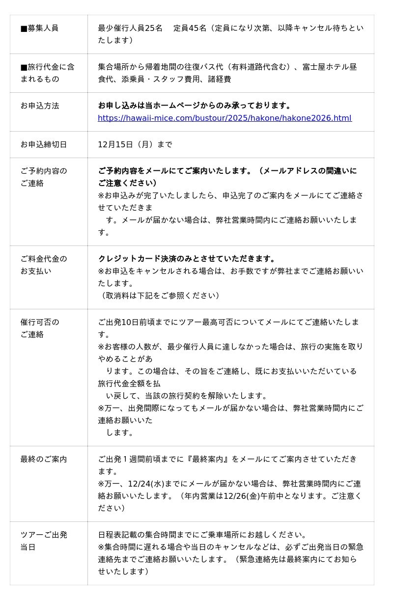 ご案内・お申込み(ご予約)にあたっての注意事項