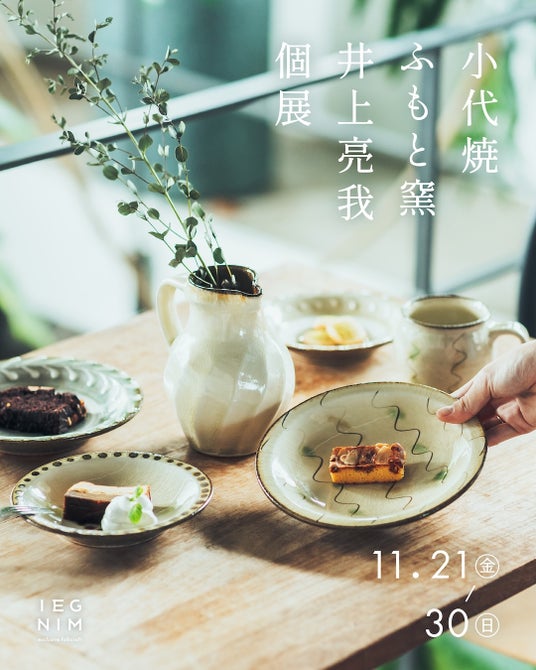 株式会社ロースター(本社:東京都新宿区、代表取締役:大崎安芸路)は、11月21日(金)より、熊本・小岱山麓の伝統窯「ふもと窯」で三代目として作陶を続ける若手陶芸家・井上亮我(いのうえりょうが)の初個展を、東京・渋谷区西原のフォーククラフトショップ『IEGNIM(イグニン)』にて開催します。