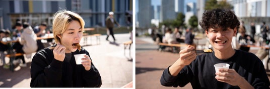 東京・豊洲の地は、マルハニチロが現在本社を置く場所。2026年春の高輪への本社移転を前に、豊洲への感謝、そして、「新中華街」シリーズ発売開始以来30年のご愛顧に少しでもお応えできたら、そうした思いから、今回のキッチンカーイベントは企画されました。イベント当日、海の見える広場、豊洲のアーバンドッグ ららぽーと豊洲ウッドデッキBには、2台のキッチンカーが登場し、シリーズ商品の中でおすすめの「五目あんかけ焼そば」「あおり炒めの焼豚炒飯」「「赤坂璃宮の餃子」の3品の無料試食提供を行いました。