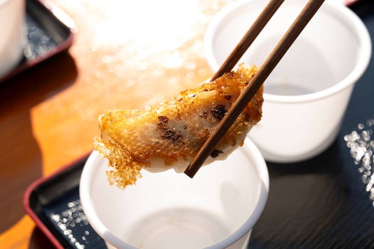 焼き目は香ばしくこんがりと仕上げ、羽根つきならではのパリッとした食感をお楽しみいただけます。薄皮ながらもしっかりとした弾力があり、もちもちとした食感をお楽しみいただけます。