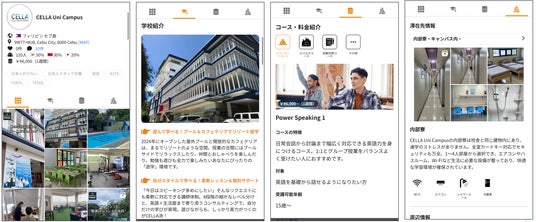 ネイティブキャンプ留学では、ユーザーが必要な情報を分かりやすく把握できるよう、常に丁寧で明確な情報提供を心がけています。CELLAの詳細情報は、以下の4つのカテゴリーに分けて掲載しており、知りたい情報を的確にお届けします。