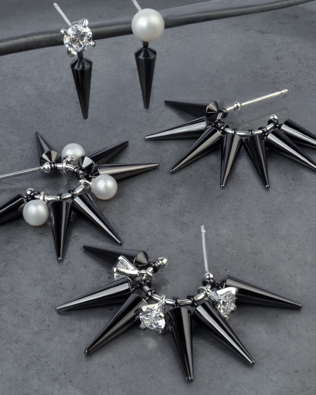 ブラックスタッズがクールなイヤージュエリーe.m.のアイコン的アイテムの、スタッズピアス。