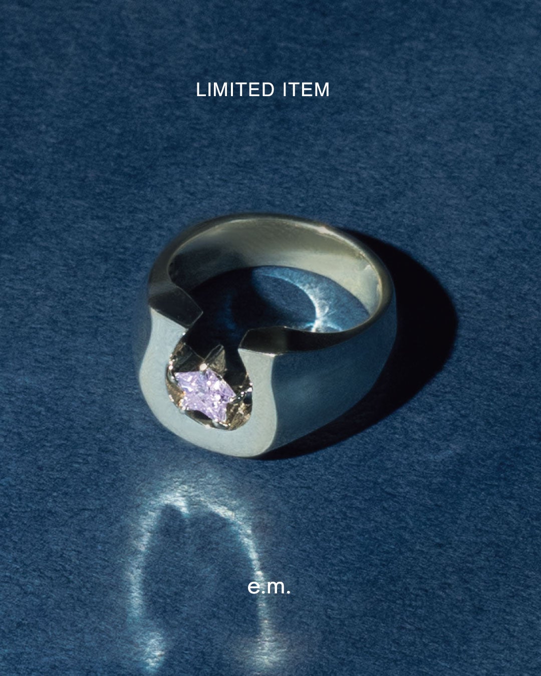 スターシェイプのキュービックジルコニアは、通常はクリアカラーの展開ですが e.m.難波店とe.m.青山店の限定でラベンダーカラーもお選びいただけます。