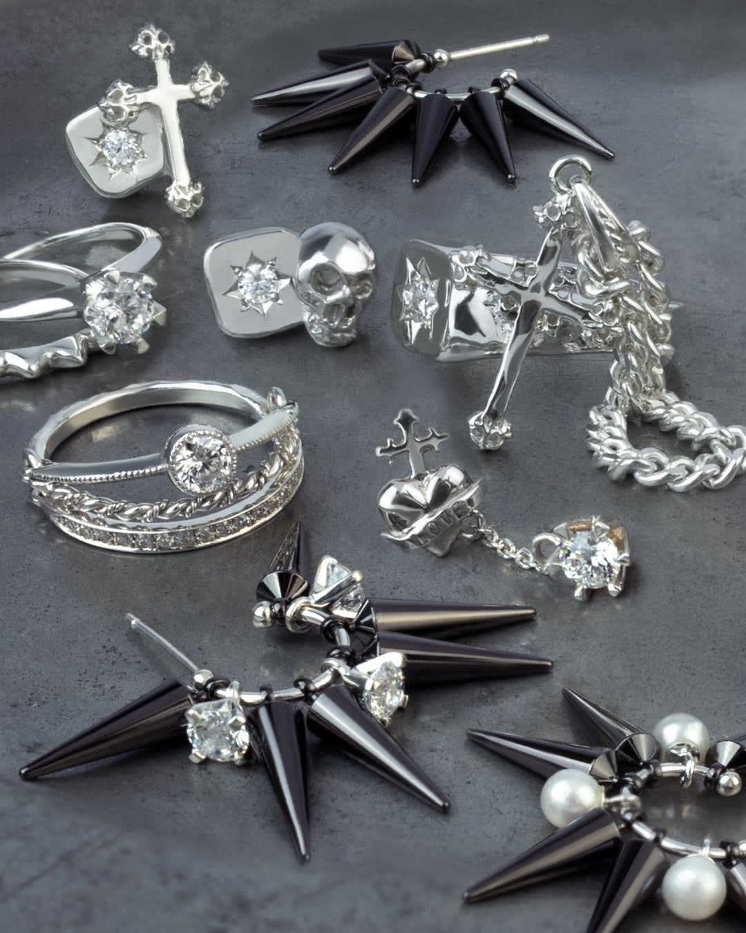 精緻な細工を堪能したいアーカイブコレクション大振りなキュービックジルコニアを贅沢にセッティングしたラグジュアリーなリングや、クロスやスカルのモチーフがゴシックなムードのアイテムなど、細部のディティールまでじっくりと眺めたい珠玉のジュエリー。