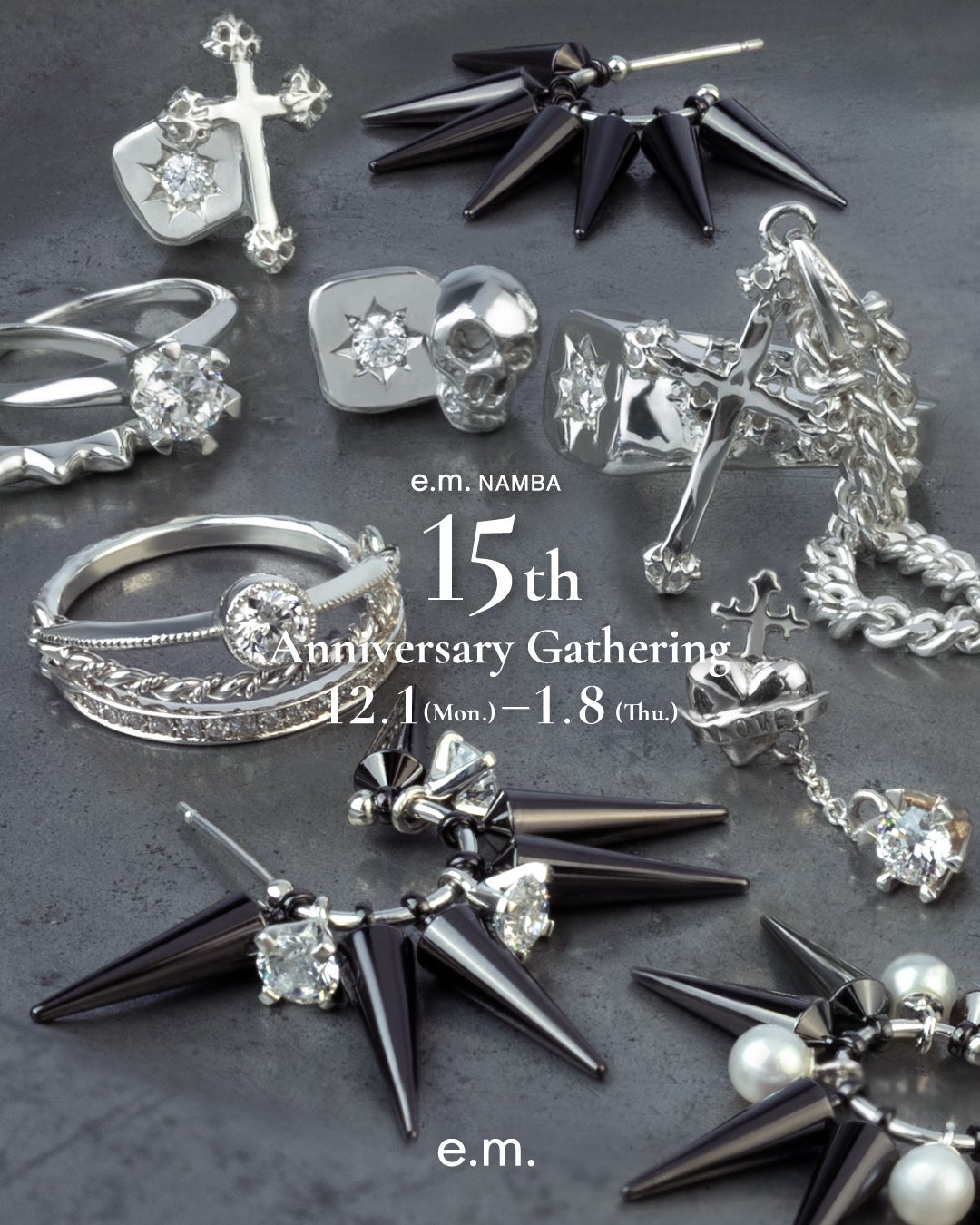 店舗オープン15周年を記念し「e.m. NAMBA 15th Anniversary Gathering」と題した期間限定イベントを2025年12月1日(月)~2026年1月8日(木)に開催。アーカイブジュエリーの受注販売など特別なラインナップで日頃の感謝をお伝えします。