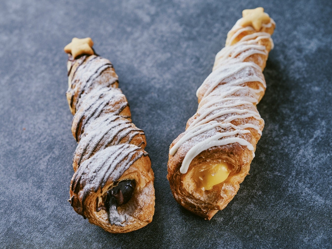 1.「チョココルネ~クリスマスver.~」(左) 2.「カスタードコルネ~クリスマスver.~」(右)