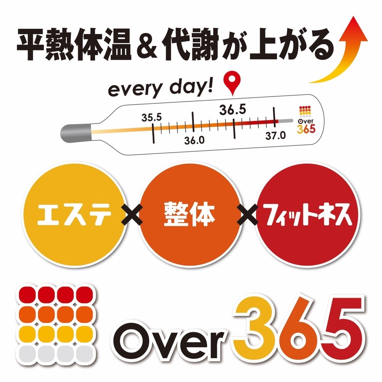 Over365は「365日、平熱36.5℃以上へ」という理念のもと、体温という"健康の土台"を整え、"未病の改善"を重視したケアを提供する専門店です。「冷えは万病のもと」といわれるように、さまざまな不調や病気に深く関わる体温。平熱体温を1℃上げるだけで代謝・免疫力・巡りが大きく変わり、やがて人生そのものが軽やかに変わることを実感できます。