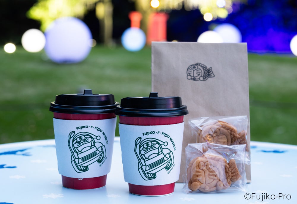 屋外でもあたたかくお過ごしいただけるよう、「はらっぱ」にヒーターを設置。また、日没後にライトアップする「クリスタルツリー」を眺めながらお楽しみいただけるテイクアウト専用のホットドリンクとミニたい焼きを、3階「ミュージアムカフェ」で午後4時より販売しています。