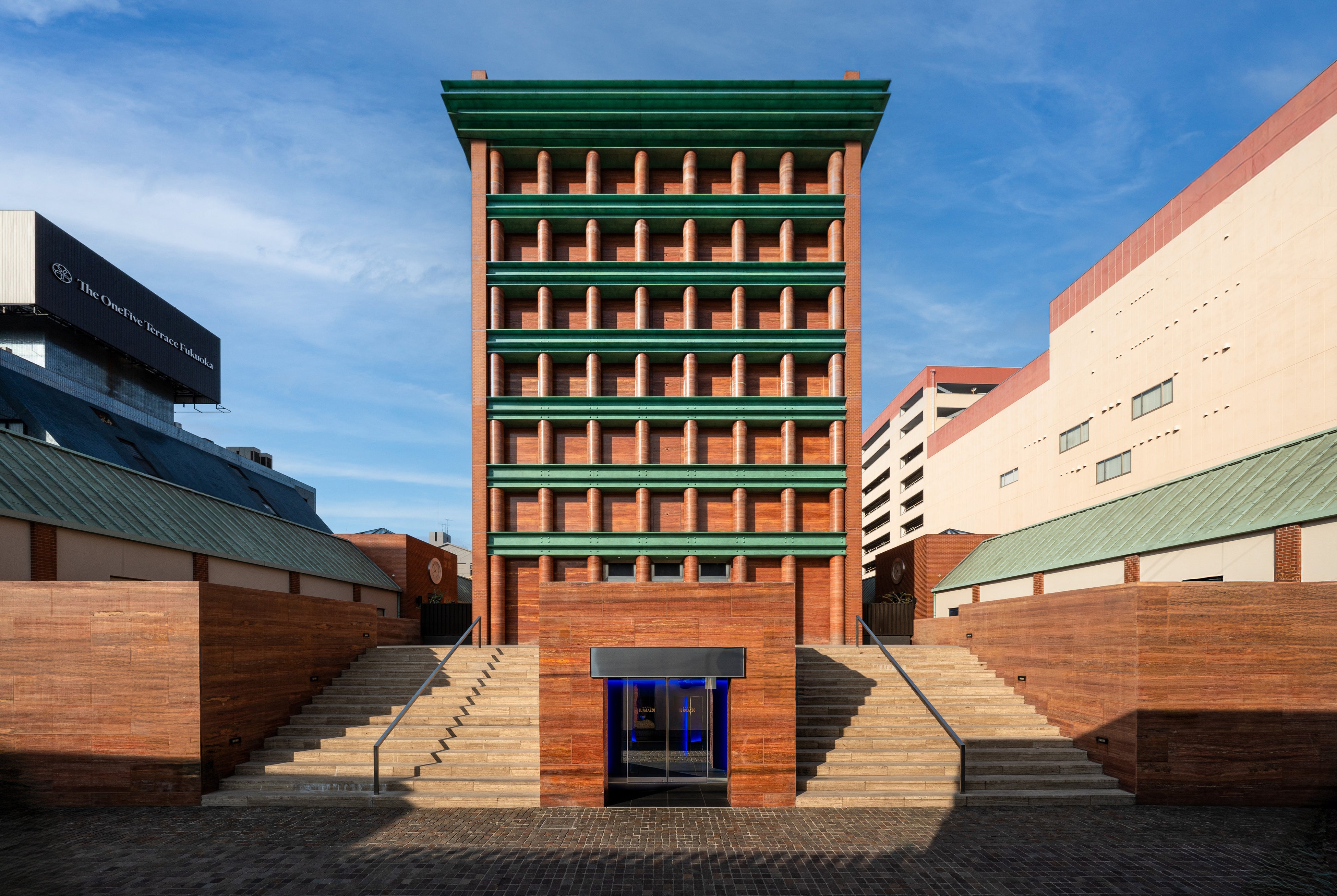 1989年に開業した日本初のデザインホテル。20世紀を代表する建築家であるイタリア人・アルド・ロッシと、日本を代表するインテリアデザイナー内田繁がタッグを組み、その建築美と構成美により大きな注目を集めました。その建築は国内外の建築・デザイン関係者からも高く評価され、1990年には建築界のノーベル賞と称される「プリツカー賞」と「福岡市都市景観賞」を受賞。さらに1991年には、アメリカ建築家協会(AIA)より、アメリカ国外の建築としては史上初となる名誉賞を受賞しました。