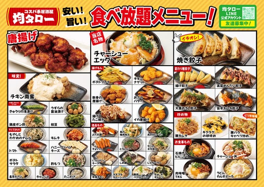 約50種の豊富なフードメニューとドリンクが激安で大好評の「コスパ系居酒屋・均タロー」は普段使いがしやすく特に若者から人気の居酒屋。グループでもご利用しやすい予約なしで当日注文OKの激安・食べ飲み放題・もつ鍋食べ放題コースが好評です。今年もたくさんの方に均タローをご愛顧いただいたことに感謝し、価格を据え置きのままで新鮮な博多明太子を追加した冬限定「食べ放題&飲み放題+博多明太もつ鍋食べ放題」を均タロー直営店で12月末までご提供します。約50種類のメニューから選べる食べ放題と飲み放題に、博多明太子でアップデートされたもつ鍋の食べ放題まで付いて、いつもと同じお値段の3,480円(税込/1名)。激安コスパ系居酒屋ならではのお得で満足な年末を、均タローでぜひお過ごしください!