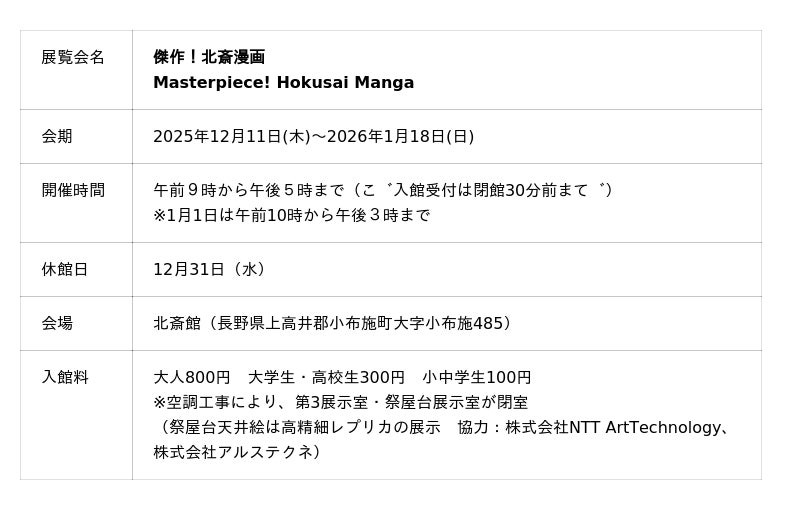 【小布施 北斎館】大人気!葛飾北斎の代表作『北斎漫画』の魅力に迫る企画展「傑作!北斎漫画」12月11日(木)から開催