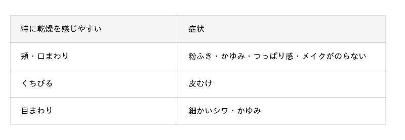 ■ 2. 乾燥しやすい顔の部位と症状