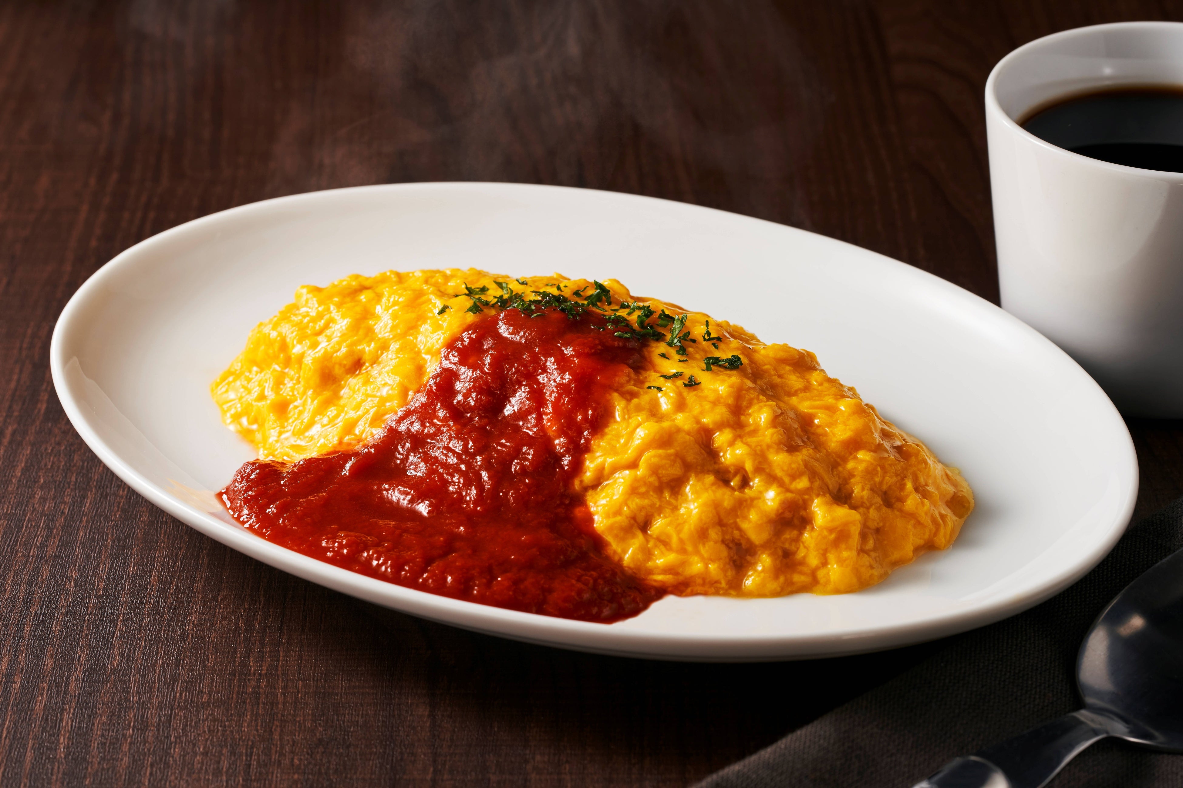 トウモロコシを加えた味わい深いケチャップライスに、人参と白いんげん豆から作られたふわとろ食感のプラントベーススクランブルエッグを乗せた一品。 トマト本来の風味を活かした香り高くみずみずしい味わいのトマトケチャップと、じっくり炒めた玉ねぎや赤ワイン、豆乳バターが決め手のコクのあるプラントベースデミグラスソースの2種類を展開します。