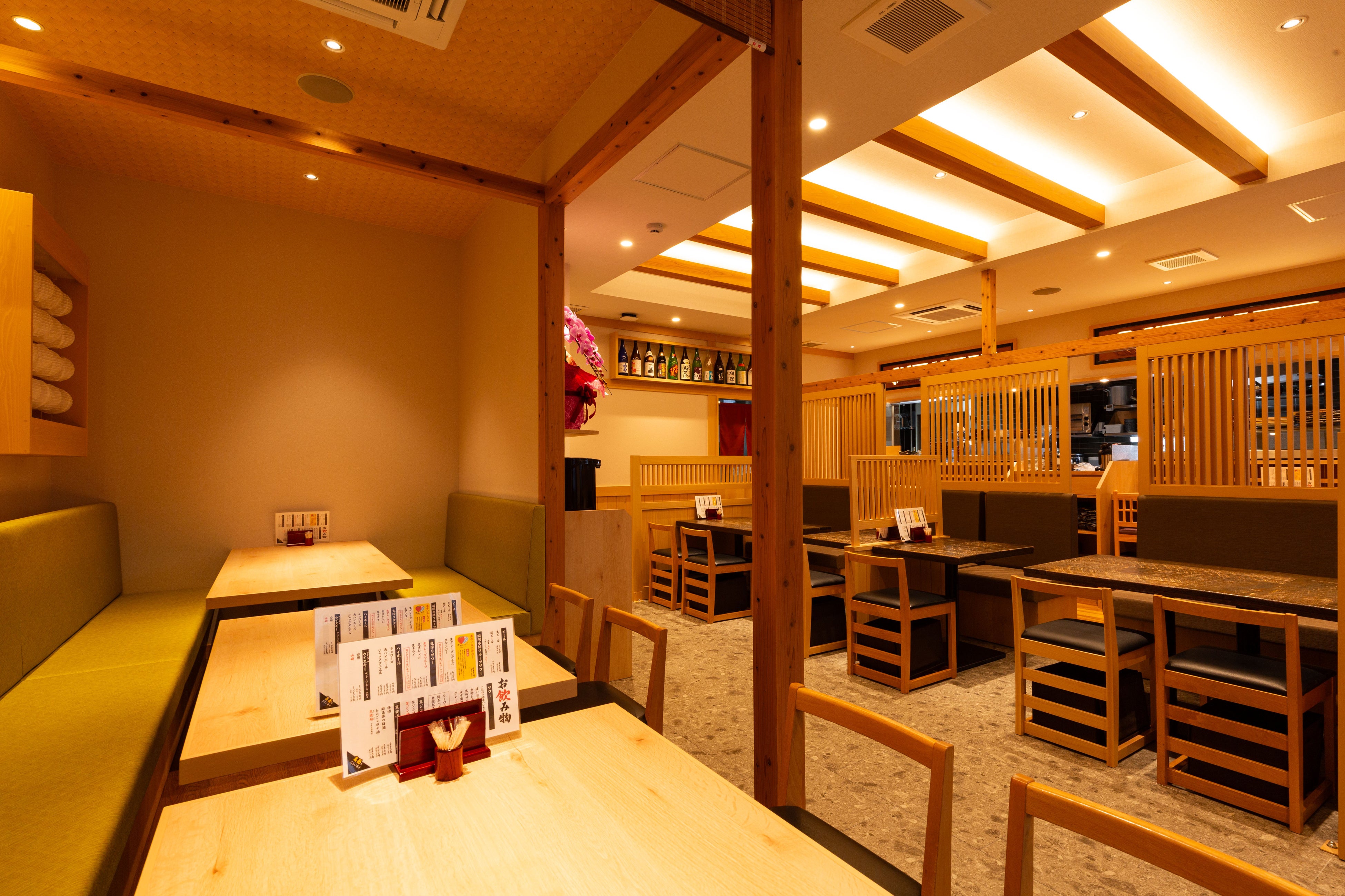 店内は和モダンで統一されており、カウンター席のお一人様からご宴会まで幅広く対応しております。ぜひお気軽にお越しください。