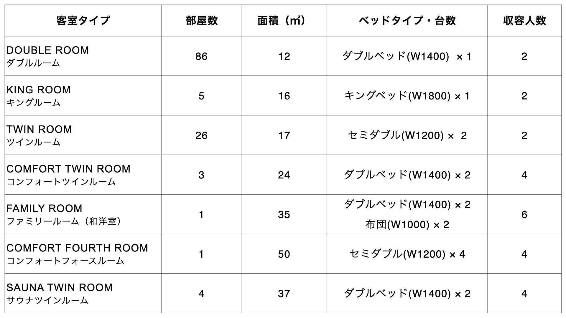 ※ファミリールーム・コンフォートフォースルーム・サウナツインルームに関しては、12月24日(水)~の予約開始となります。
