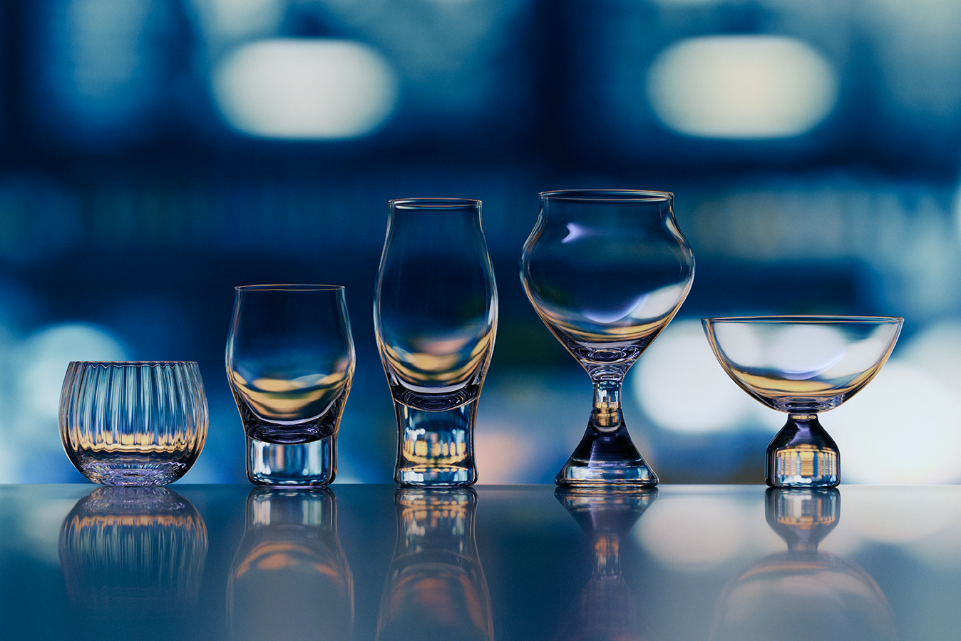 木本硝子の日本酒グラスは100種類を超えますが、どなたでもトリプリングがしやすいように、特徴別に5つに分類した「サケグラスセレクション」として販売しております。