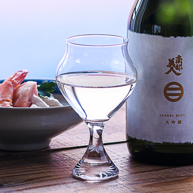 日本酒をラグジュアリー且つエレガントに楽しむなら、このグラスで決まりでしょう。華やかな香りの大吟醸に合わせてみることをお勧めします。お酒がやわらかくゆるやかに口の中でほどけて広がります。グラスを持つ指までも美しく演出する文字通り「華」のあるグラスです。