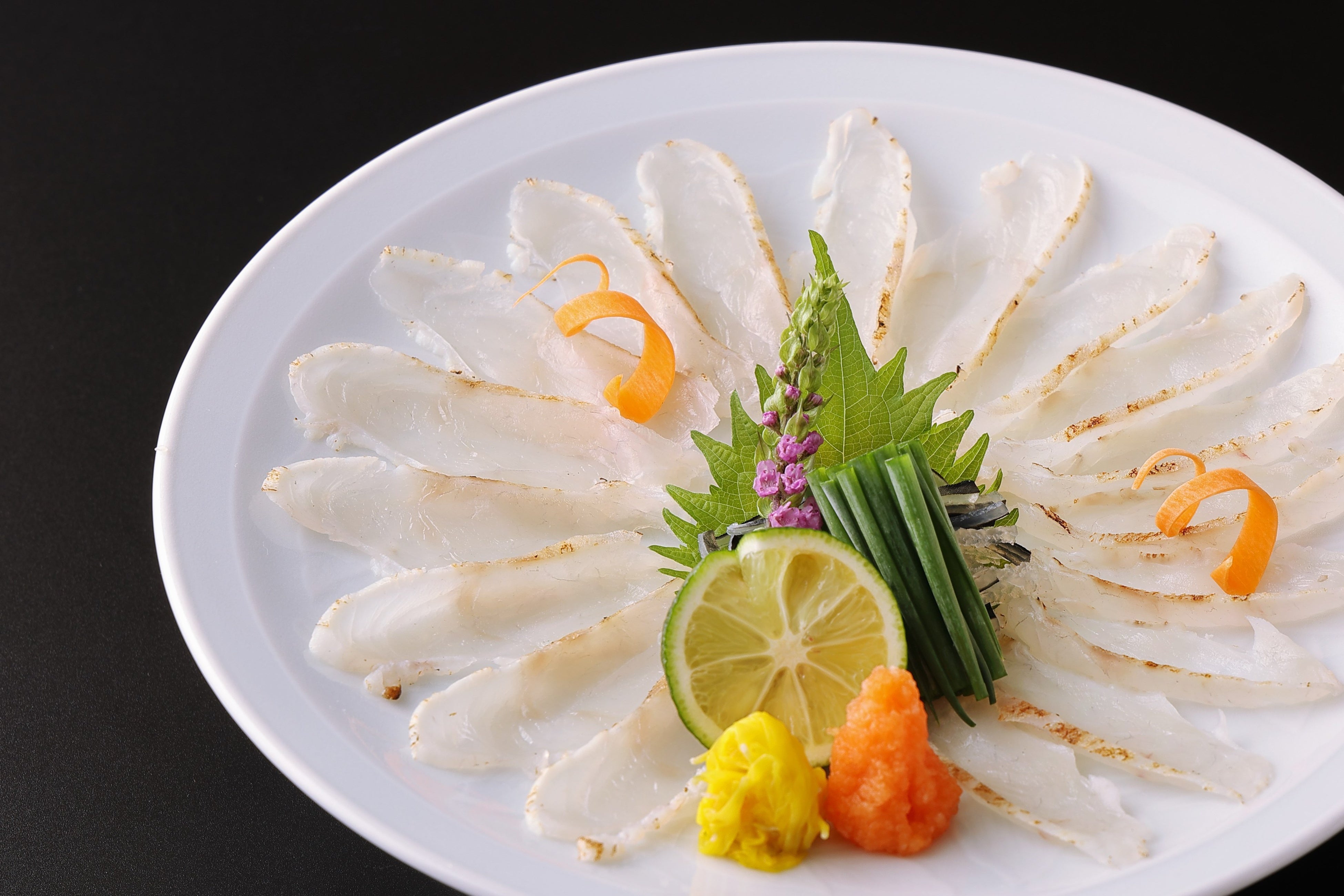 炙りふぐの薄造りと本日の鮮魚二種盛り