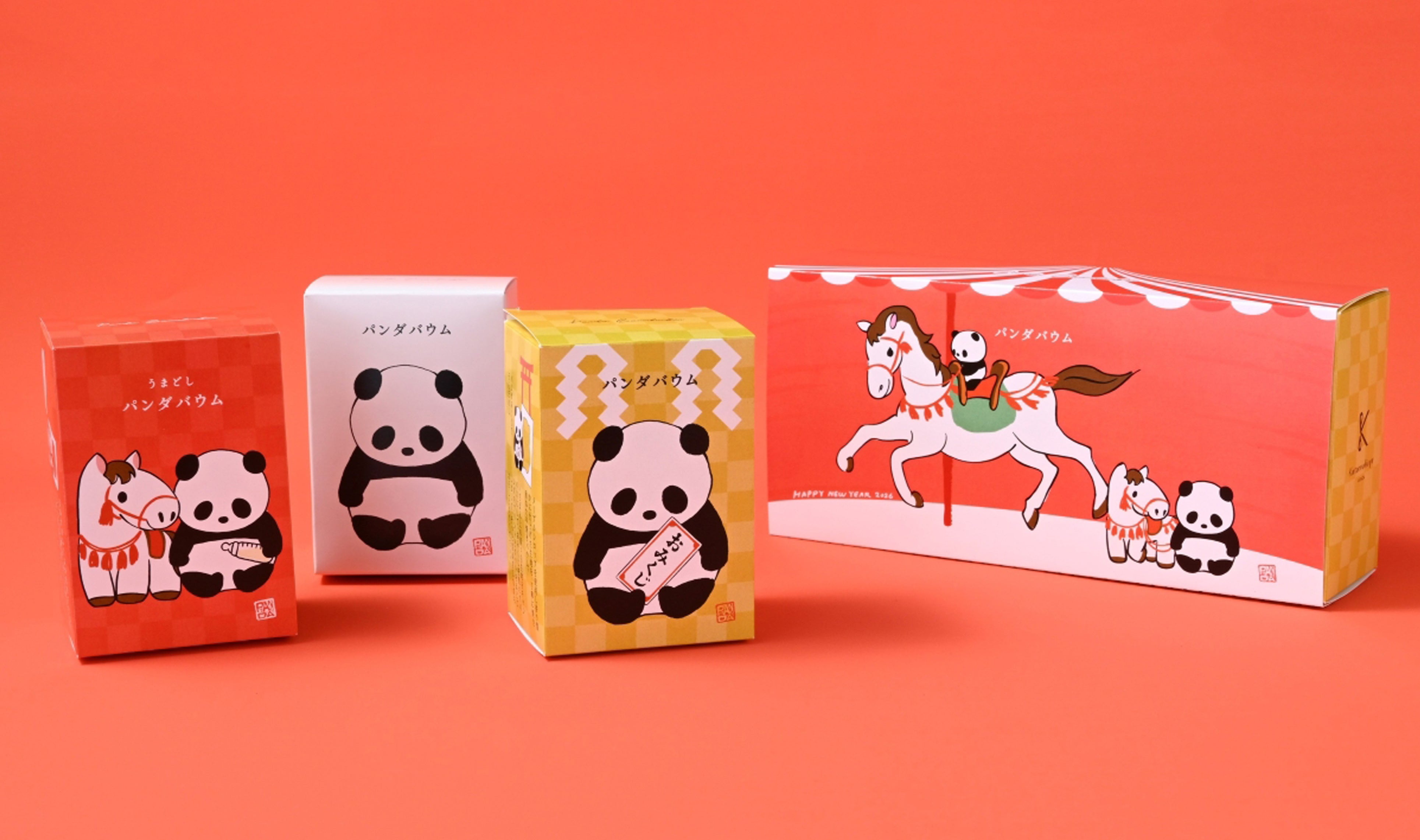 「うまどしパンダバウム」「おみくじパンダバウム」「パンダバウム」がセットになりました。新年の楽しいひとときに、思わず笑顔がこぼれる一品です。(オンライン)