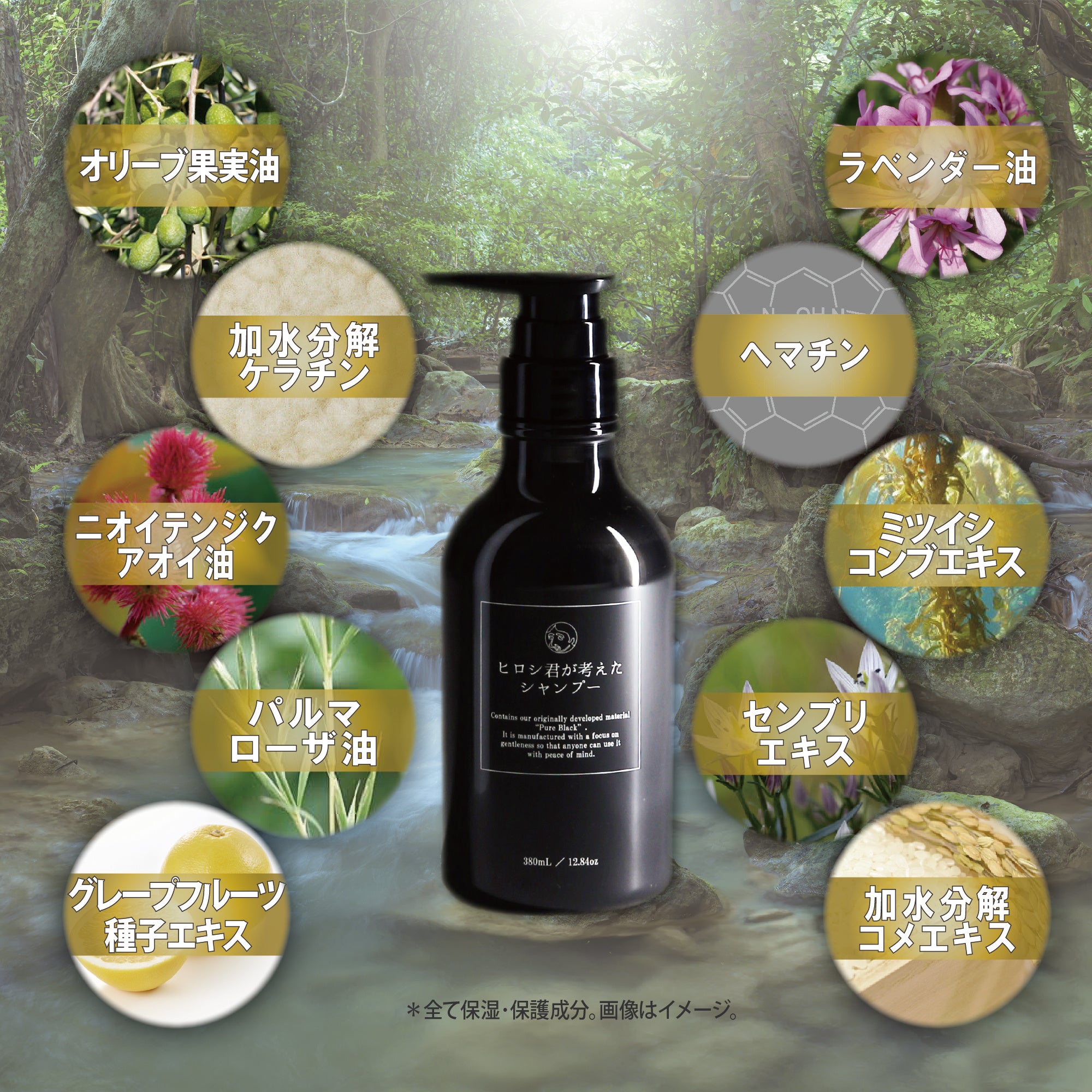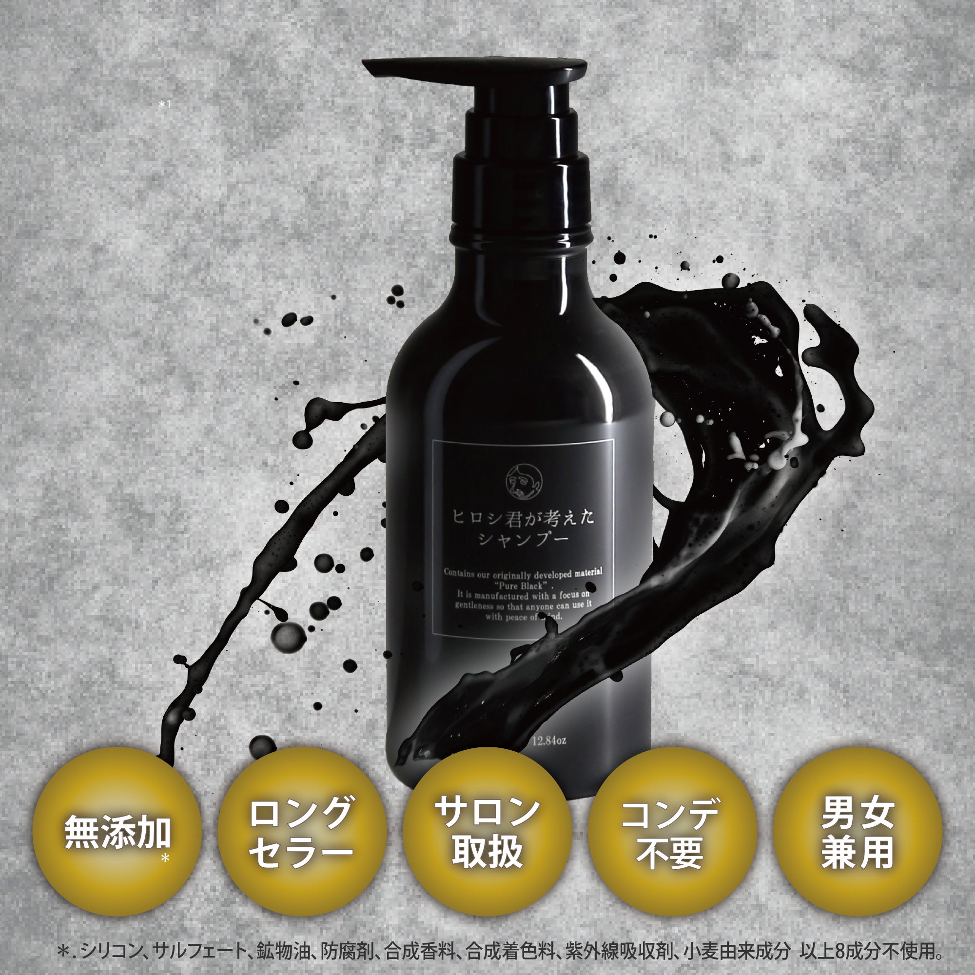 「ヒロシ君が考えたシャンプー」は、会社代表であり研究者でもある「ヒロシ君」が、3億円を超える開発費と10年を超える年月、そして人生をかけて開発したセラミック素材「ピュアブラック」を配合した黒いスカルプシャンプーです。そんなヒロシ君が考えたシャンプーが、2010年の発売以来初めて、パッケージを一新し、内容量も増量しリニューアルいたしました。