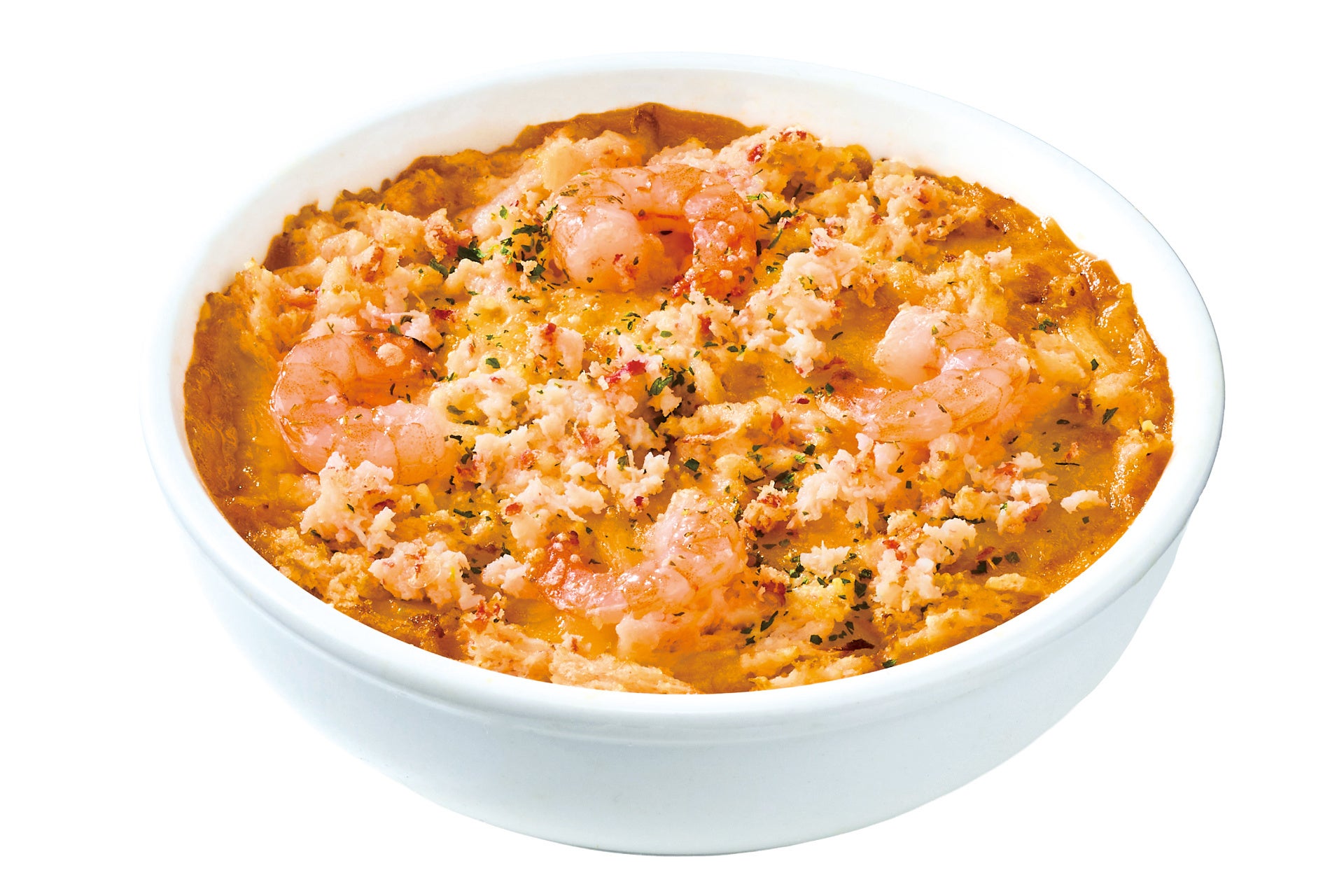 カニとエビのトマトクリームドリアカニとエビの旨味に、濃厚トマトクリームが美味しさを一層引き立てる冬のごちそうドリア。