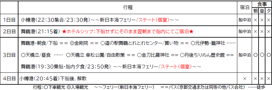 【小樽発着】新日本海フェリー"個室利用"!舞鶴-小樽就航55周年記念 2026年冬の舞鶴・天橋立を満喫 団体旅行発売開始!