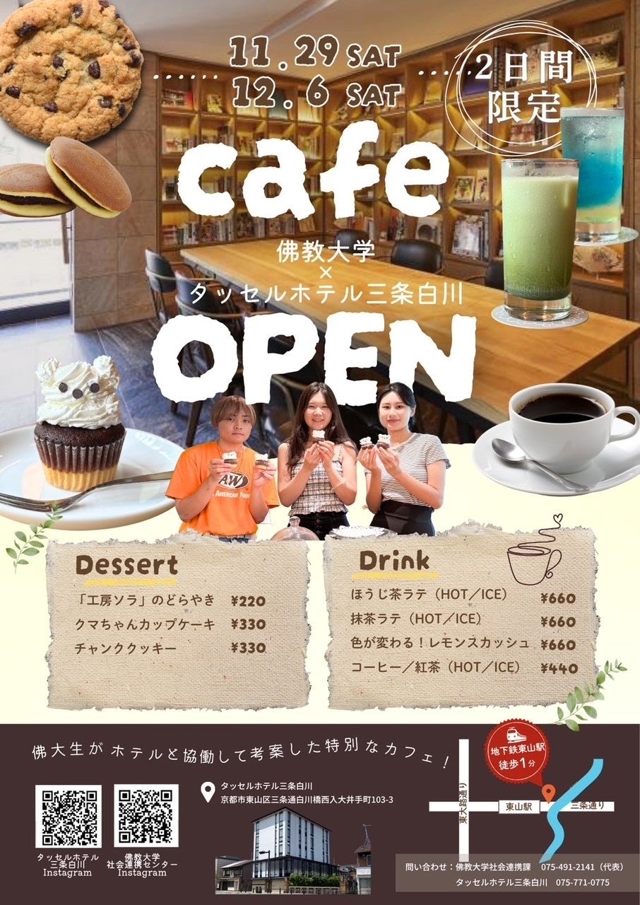佛教大学(京都市北区)社会連携センターとのコラボで学生が考案した特別メニューを提供するカフェを 2 日間限定でオープンします。