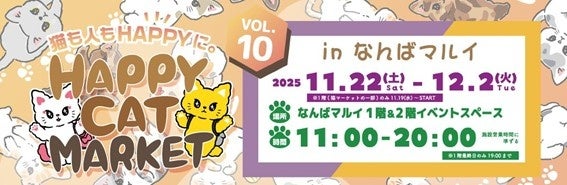 なんばマルイ(株式会社丸井、本社:東京都中野区、代表取締役社長:青野 真博)1F、2Fイベントスペースにて、『HAPPY CAT MARKET vol.10』を開催中です。