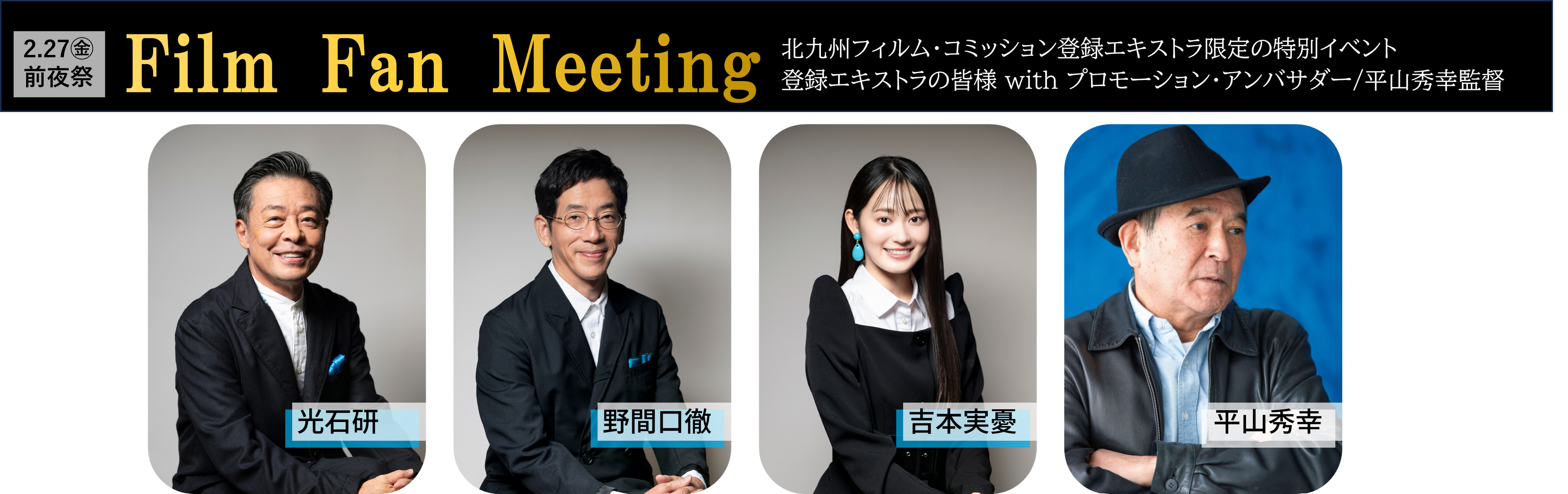 第3回目となる北九州国際映画祭、開幕セレモニー前夜の2月27日(金)に「映画の街・北九州」を支えるエキストラの皆様限定の特別企画「豪華俳優陣と映画の魅力を語り合う『フィルム・ファン・ミーティング』」を初開催いたします。