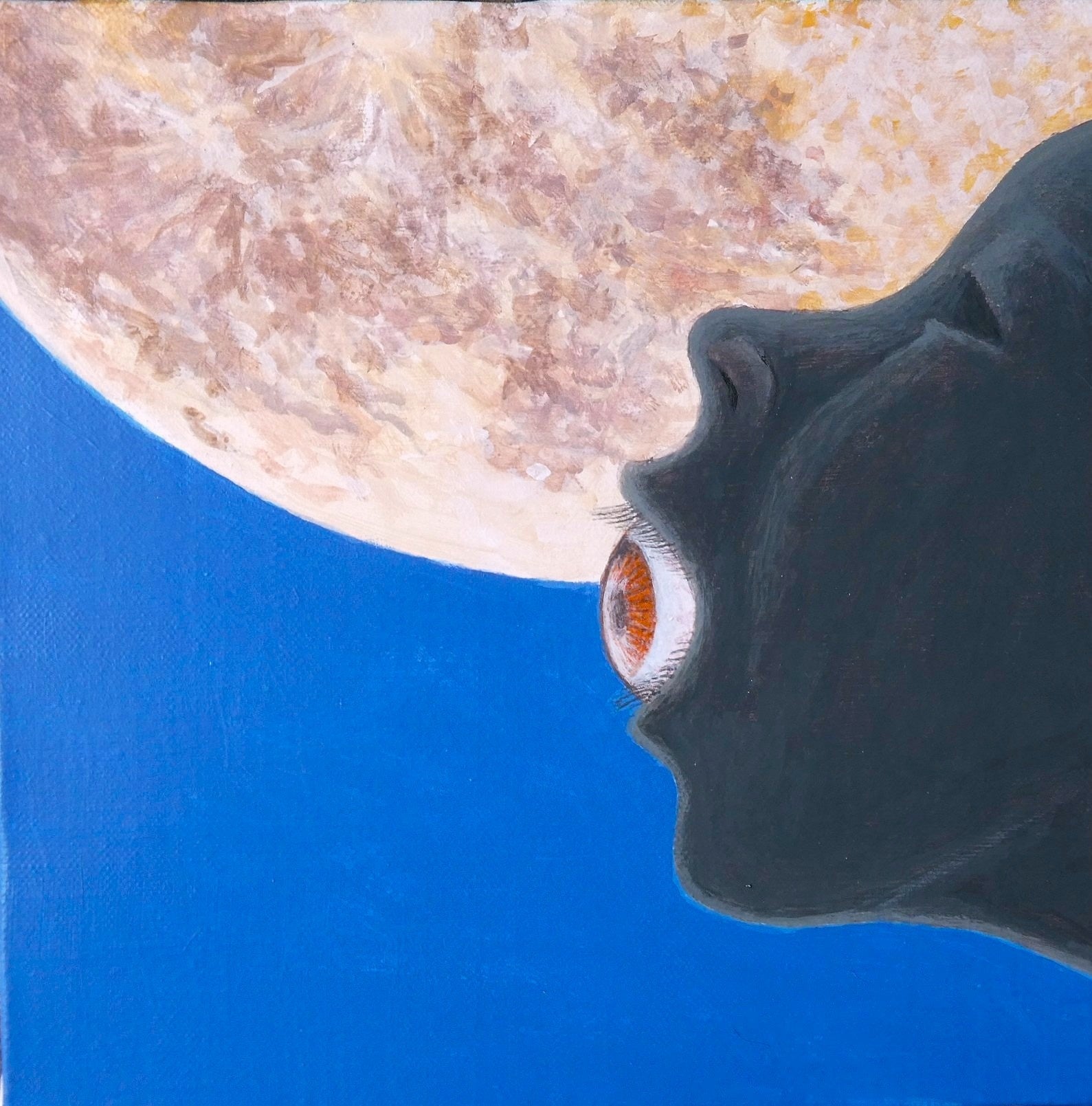 太陽と月(2020 清水慶太 木製パネルにアクリル絵の具 2枚1組)