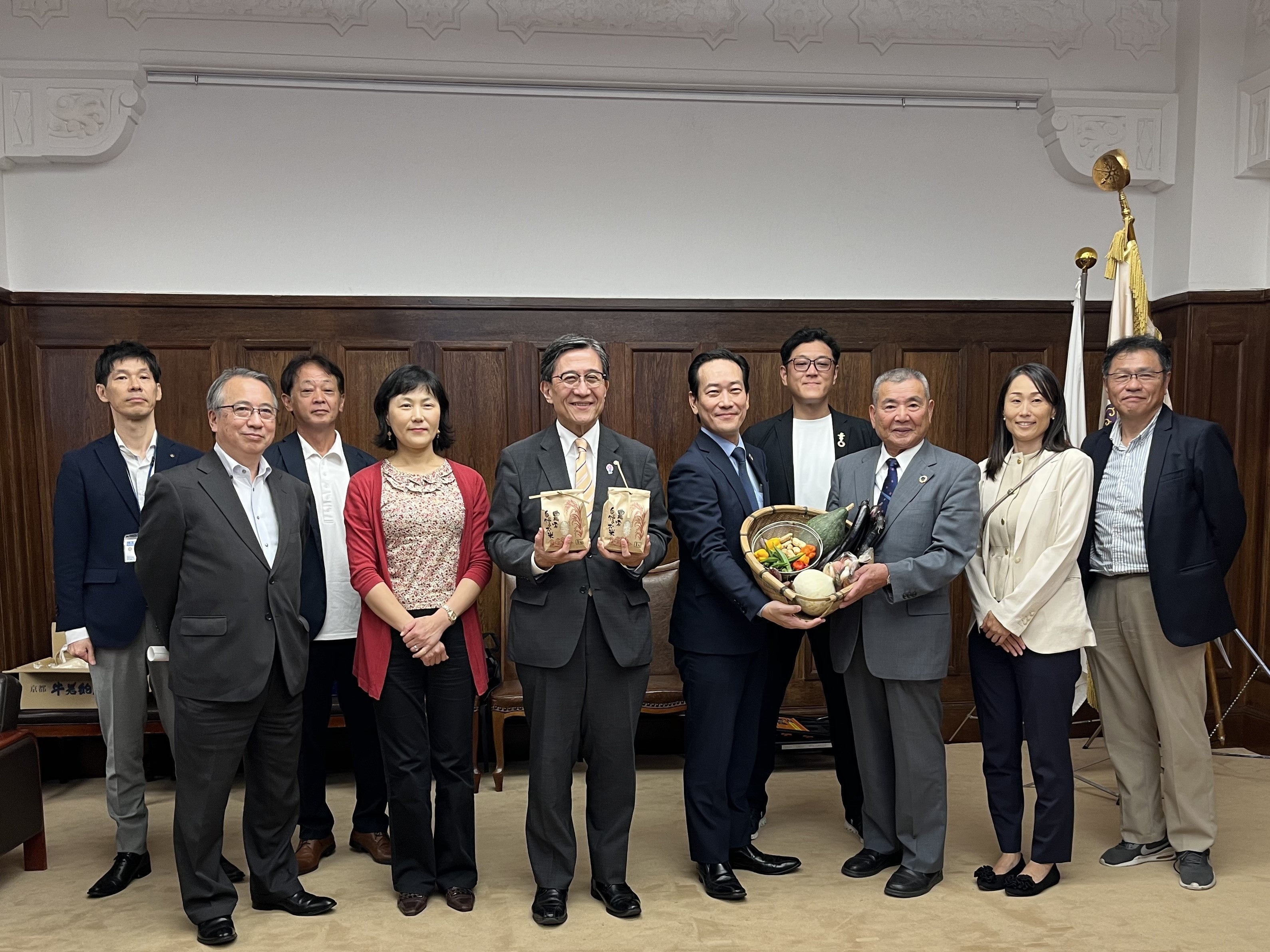 収穫と進捗報告のためプロジェクトメンバーが松井京都市長を訪問。新米をご試食いただきました。