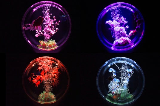 4つの水槽に春夏秋冬それぞれの花の風景をコレクション。