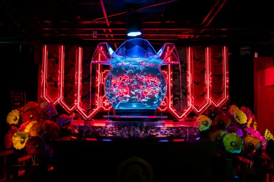 假屋崎氏:「水槽作品「花魁」が持つ、きらびやかな世界観は「華」の精神に通じるものがあります。この空間とコラボレーションするにあたり大切にしたのは、「金魚の命の躍動」と「花の生命の輝き」を融合させることでした。金魚が泳ぐ水の世界と、花が咲き誇る世界が混じり合い、この世のものとは思えない幸福感に包まれるような空間を創作しました。」