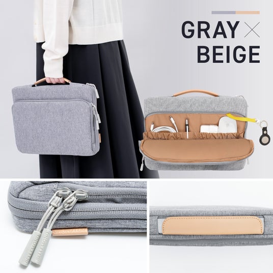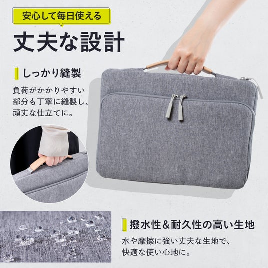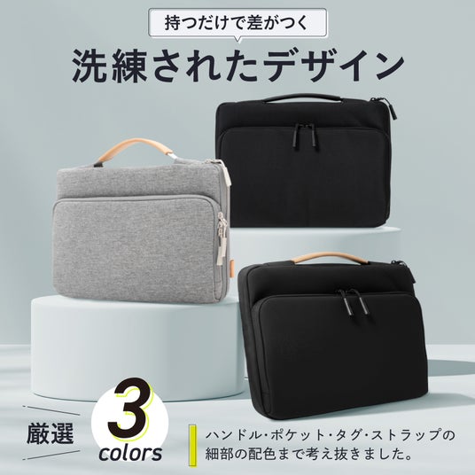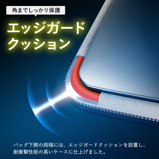 衝撃吸収クッション・大容量ポケット・ハンドル付きで"ぴったりサイズ"の持ち運びを実現。マウス・充電器・ケーブル・モバイルバッテリーなどの小物収納に便利。毎日の通勤・通学に心地よさを。プレゼントにも最適