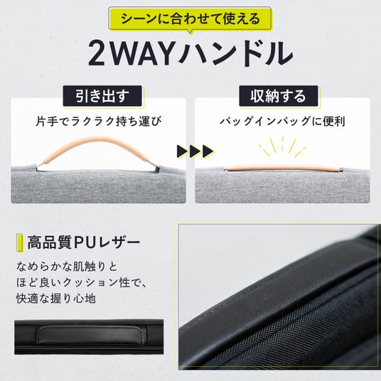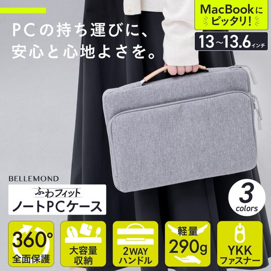360°保護の大容量ポケット付き、ノートパソコンケース13インチ用が新登場!持ち手ハンドル付で軽量。MacBook Air/Pro 13.6(M4/3/2/1)対応PCバッグ「ふわフィット」贈り物に◎