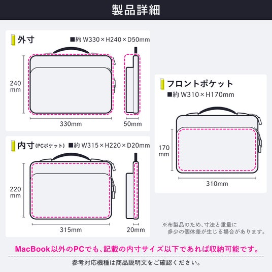 PCポケット内寸:約 W315 × H220 × D20mm