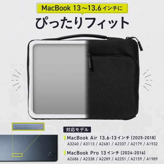 ぴったりサイズ設計:MacBook Air/Pro 13~13.6インチ(M4/M3/M2/M1)に最適化
