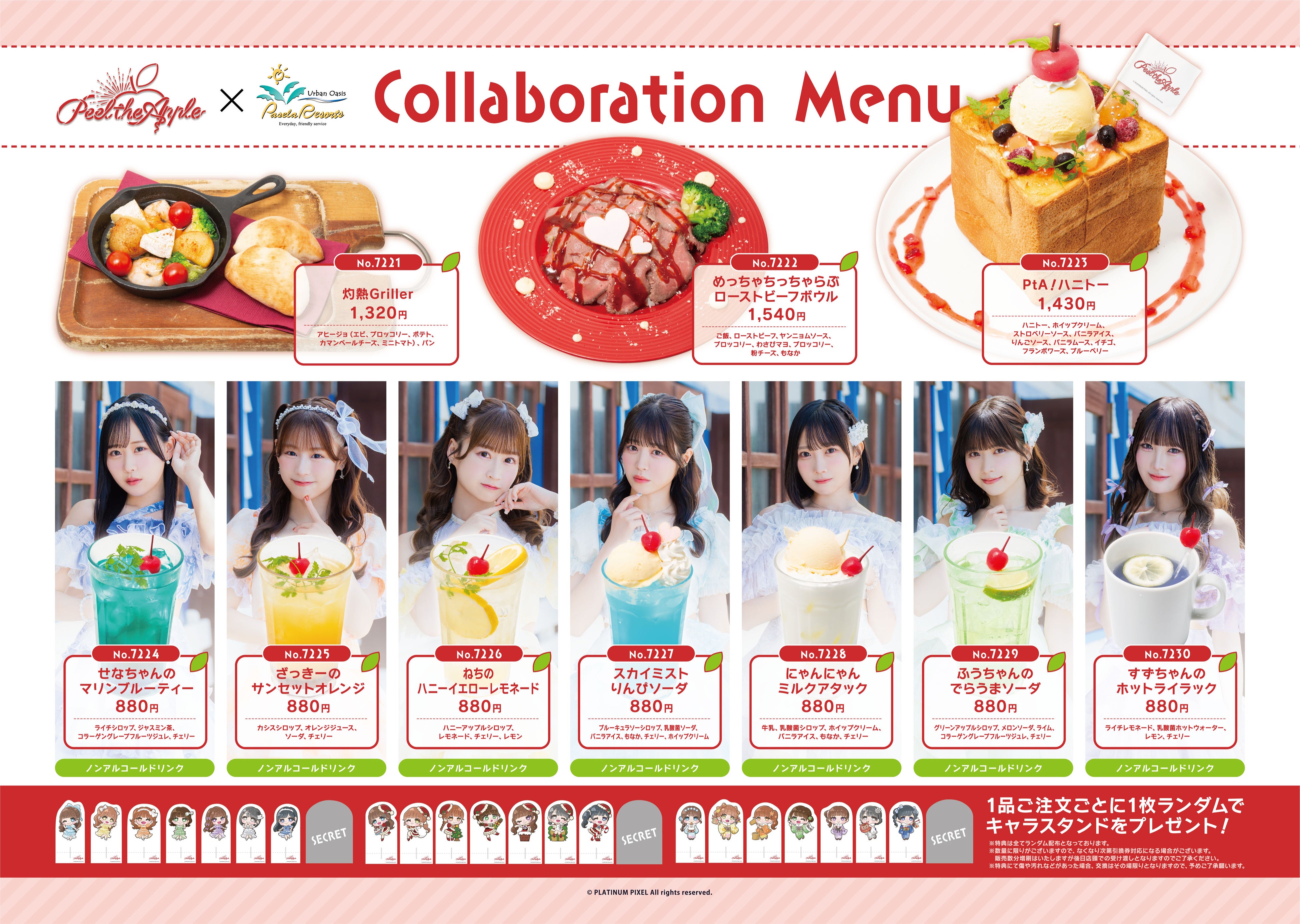 ライブ楽曲をイメージしたコラボフードや、メンバーごとのコラボドリンク、さらに「ぴるあぽ」イメージの特製ハニトーも登場します。