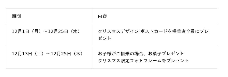 今年は、昨年ご好評いただいたクリスマス限定デザインのポストカードに加え、12月13日(土)以降はクリスマス限定フォトフレームもプレゼントいたします。ヘリコプターフライトの特別な思い出を、写真とともに残していただけるようご用意したオリジナルノベルティです。