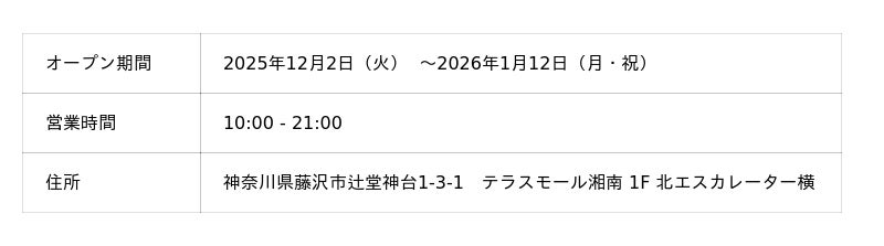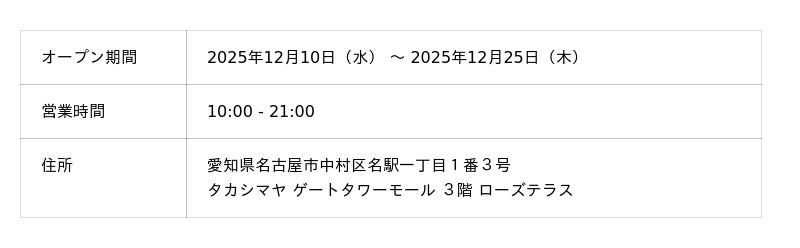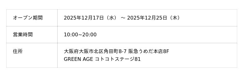 ・期間 :2025年11月28日(金) 11:00 ~ 2025年12月26日(金) 12:00