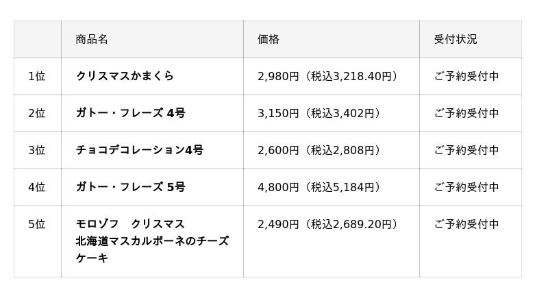 今年は「確かなおいしさと値頃感」、「好みに合わせたサイズと種類」にこだわったクリスマスケーキ約23種をラインアップし全国のセブン‐イレブン店舗とセブン‐イレブンのネットサービス「セブンミール」にて9月15日(月)から予約を開始しております。その中から11月27日(木)時点での人気ランキングTOP5をご紹介いたします。
