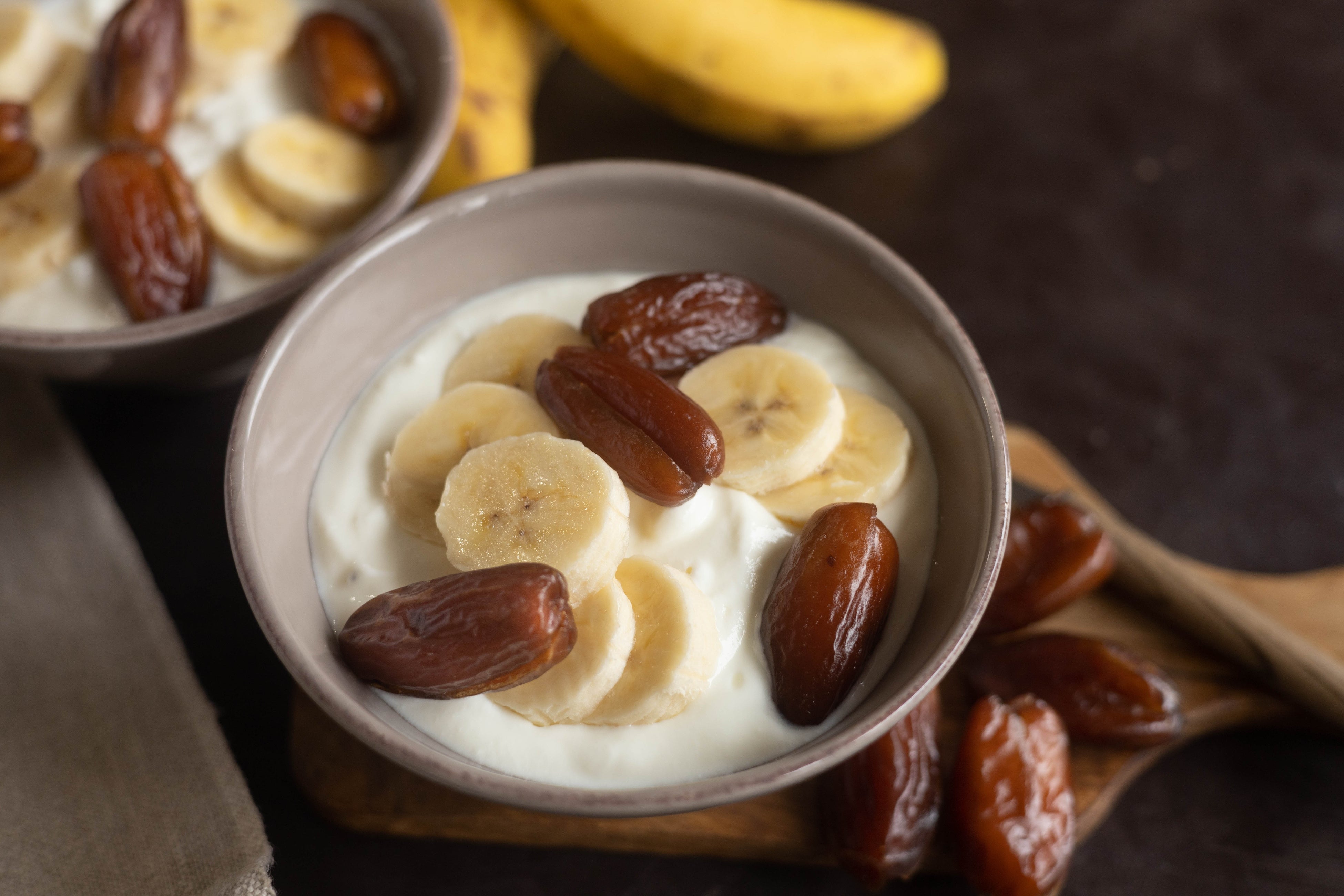 ヨーグルトとの相性もぴったりです。定番のバナナと合わせてトッピングするのもおすすめです。デーツを加えることで、食物繊維やカリウム、マグネシウムを摂ることができます。
