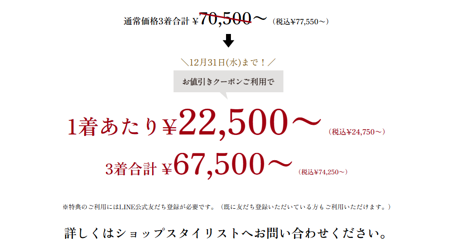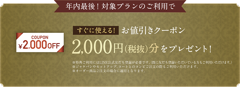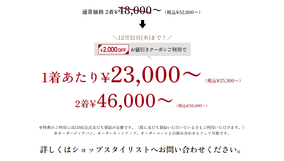 【年内最後!オーダースーツ2着コンビフェア特典】