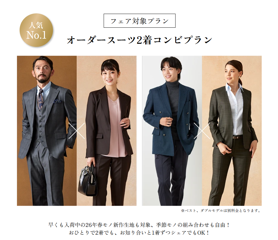 【オーダースーツ2着コンビフェア対象プラン】