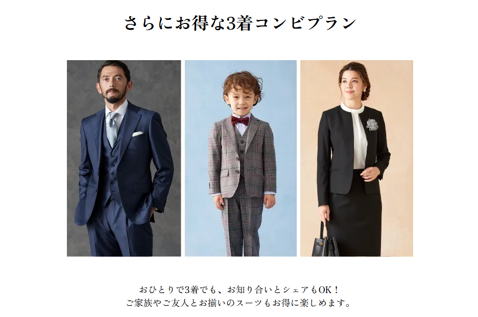 ※ コンビプラン・・・オーダースーツを2着以上ご購入していただいた場合の1着あたりのお値段です。組み合わせは自由ですので、異なる価格帯のオーダースーツと組み合わせていただいても本価格が適用されます。