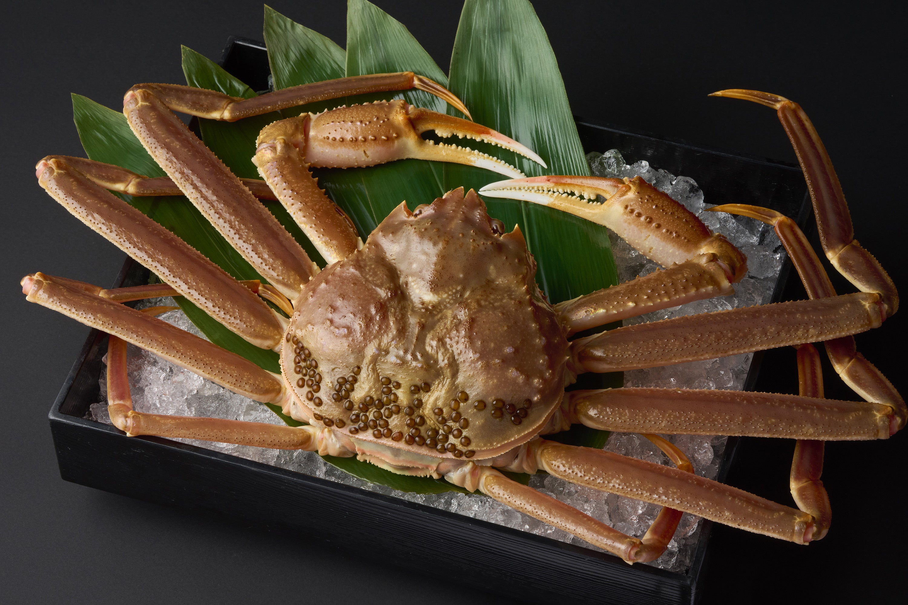 松葉蟹をはじめ、冬の海の恵みを一貫ごとに丁寧に。グラスシャンパンサービスのほか、十四代、黒龍の仁左衛門・石田屋など──選び抜かれた銘酒三種との饗宴もお愉しみいただけます。技と旬が織りなす、凛然とした夜のひとときをご堪能ください。
