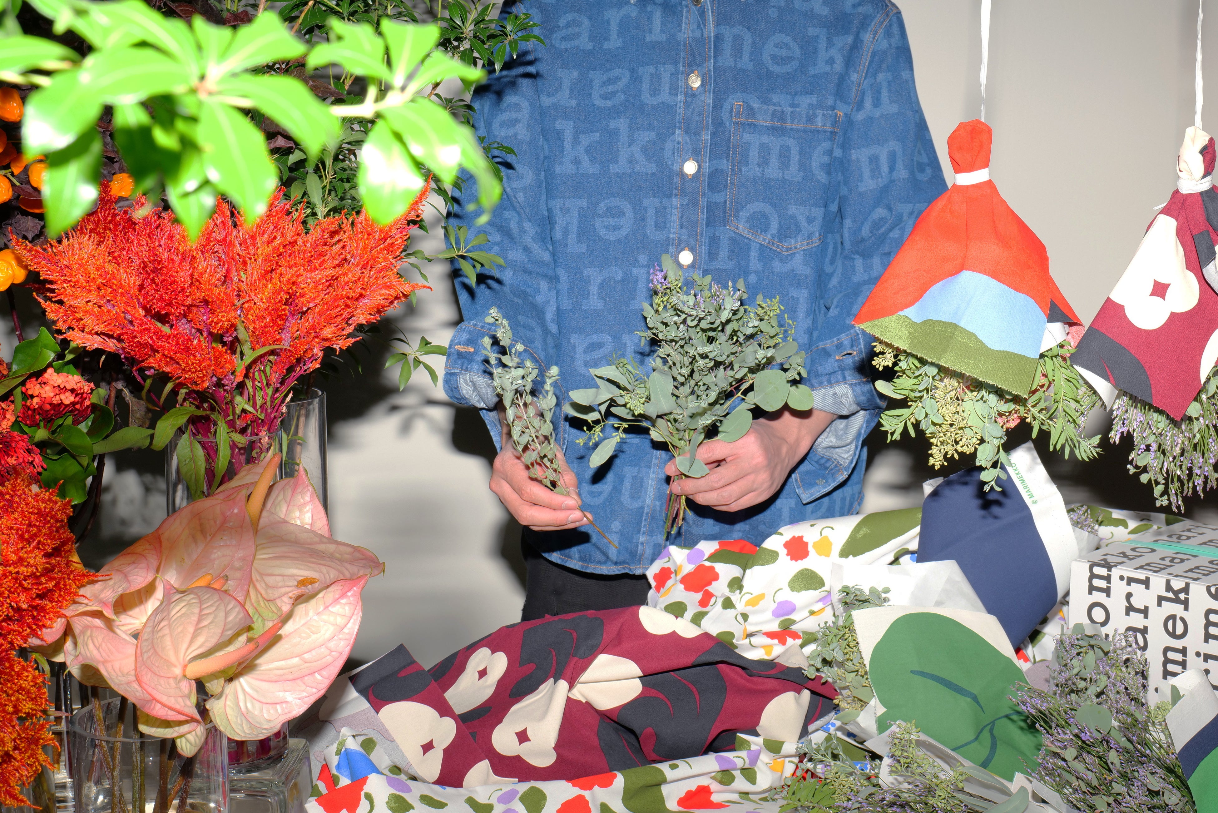 12月の週末限定で、一部対象のマリメッコストアにて、商品を2点以上お買い上げいただいたお客様へ、マリメッコのカットファブリックでラッピングしたホリデーシーズンをイメージしたスワッグをプレゼント。