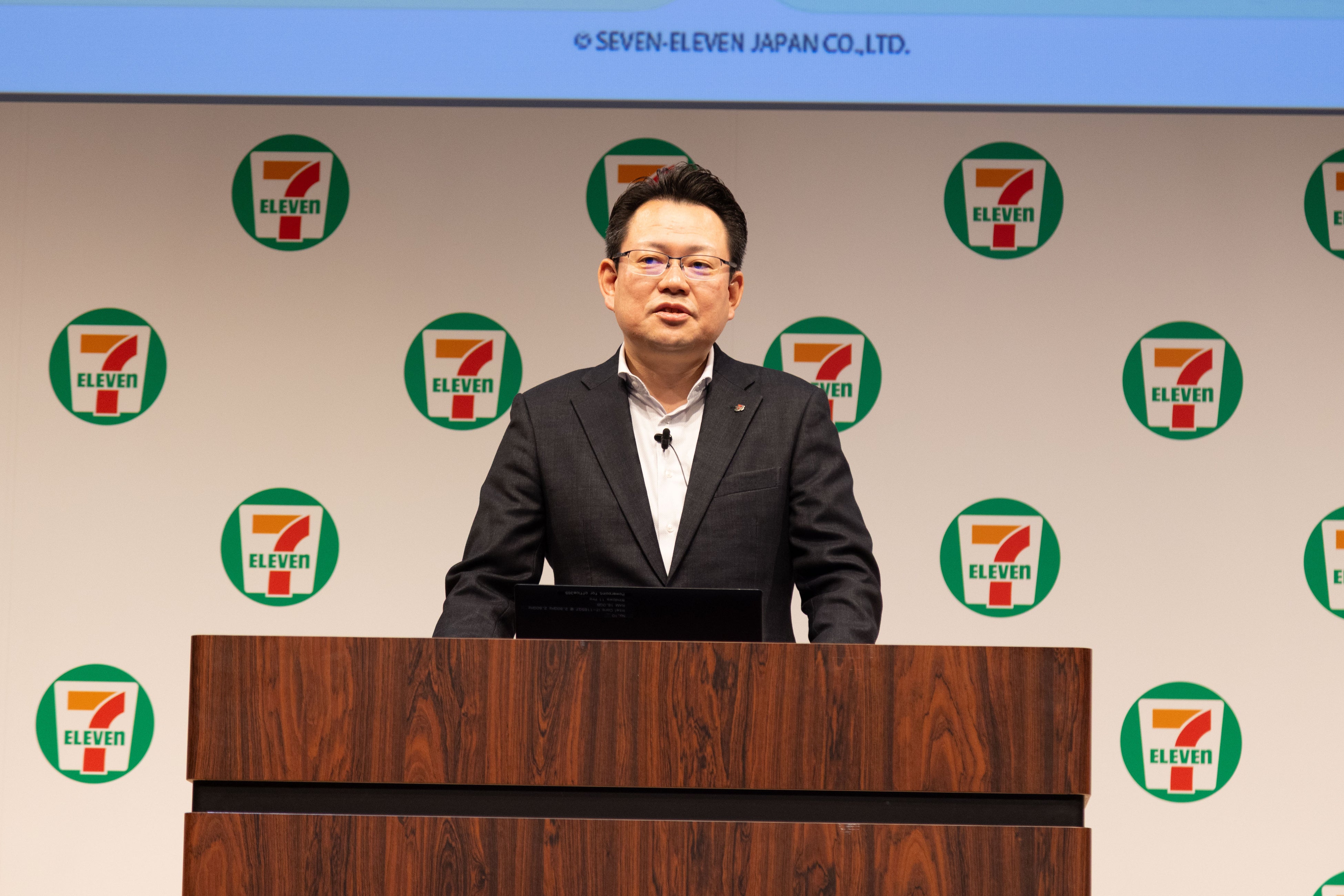 発表会当日は、株式会社セブン-イレブン・ジャパン マーケティング本部長の岡嶋則幸が登壇し、「ちいかわと冬をたのしんじゃお! セブン‐イレブン×ちいかわ」キャンペーンの実施内容やその狙いについて説明しました。『クリスマス・年末年始に何度も来店いただけるような楽しい企画をご用意しましたので、ぜひご期待ください。』と今年で2年目となる「ちいかわ」コラボについて述べました。また、『現在私たちは、「なにがあるかな、セブン‐イレブン。」というメッセージを掲げています。毎日の暮らしの中で、セブン-イレブンに立ち寄っていただければ小さな発見や新しい好きとの出会える、そんな場に進化していきたいと思っています。』とプレゼンを締めくくりました。
