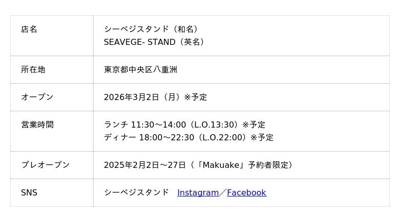 シーベジタブル、初の常設店「シーベジスタンド」を2026年3月に東京・八重洲にオープン